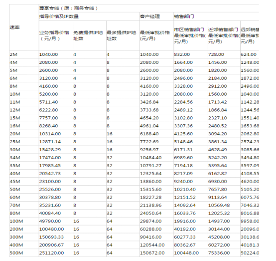 特别说明:以上价格为北京企业宽带网的标准报价,不同的使用场景和需求企业光纤接入价格不一样,具体的价格请来电咨询。